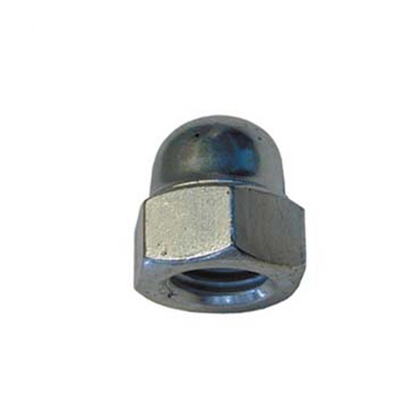 Sechskant-Hutmutter nach DIN 1587, aus verzinktem Stahl und metrischem Gewinde.